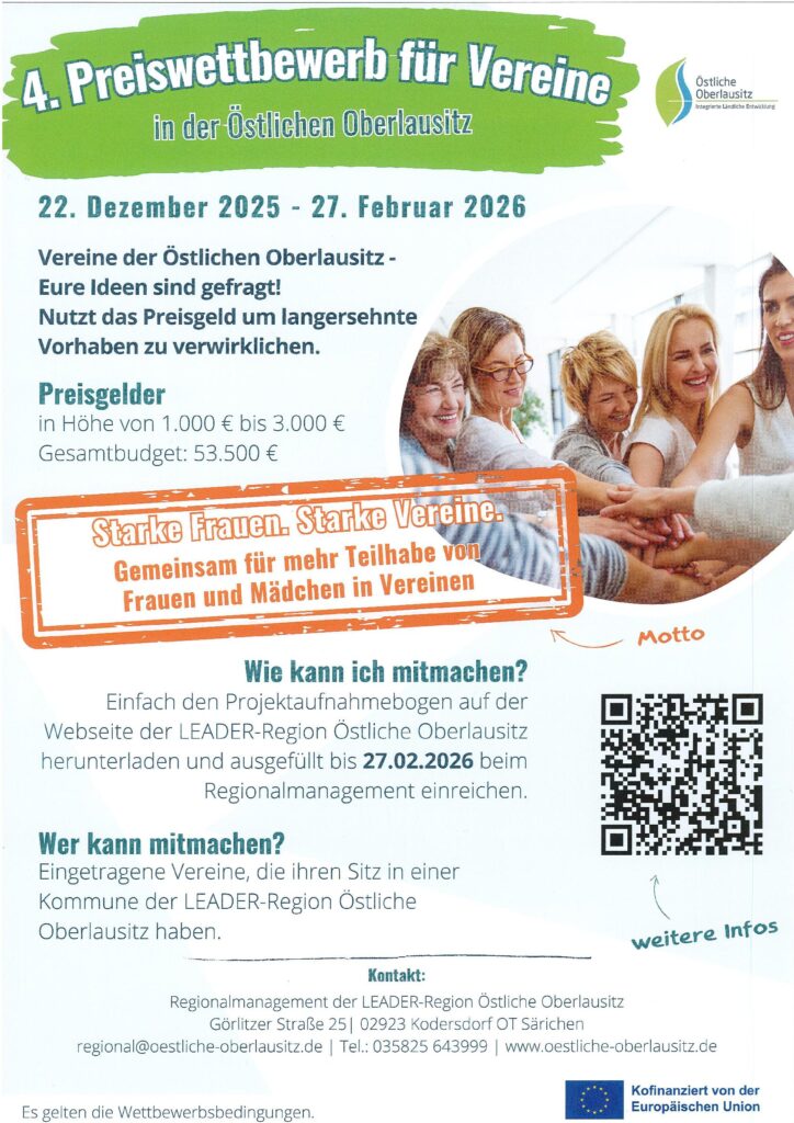 Am 22.12.2025 startete der 4. Preiswettbewerb für Vereine. In diesem Jahr steht der Wettbewerb unter einem Motto: Starke Frauen. Starke Vereine. Gemeinsam für mehr Teilhabe von Frauen und Mädchen in Vereinen.